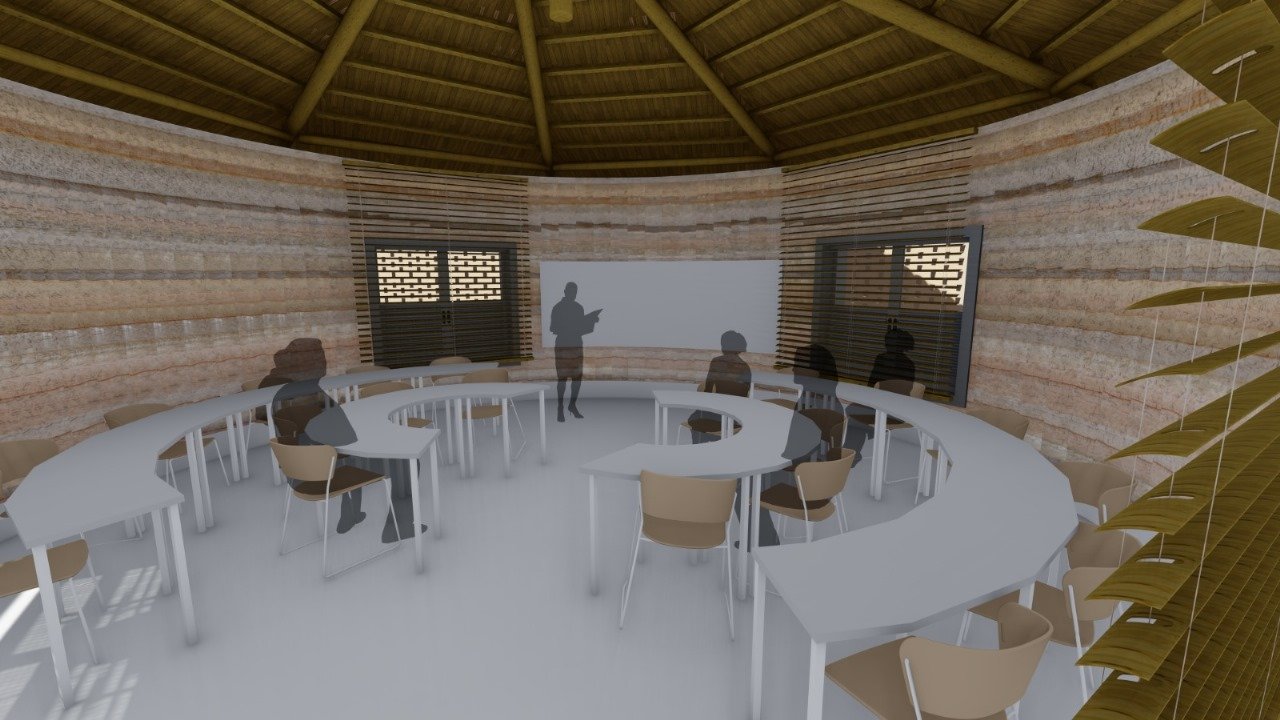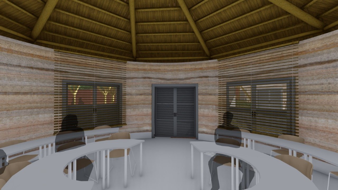 Construída com materiais locais para baixo impacto ambiental.